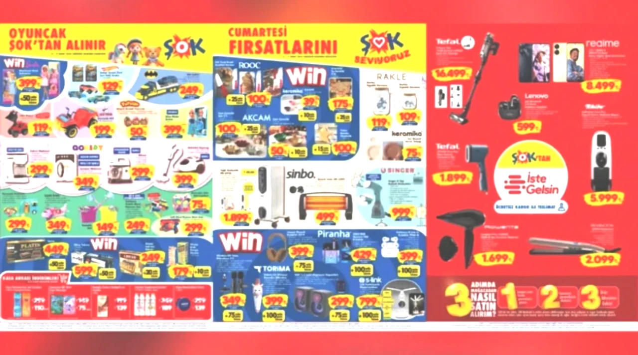 ŞOK’un 18-24 Şubat tarihleri arasında geçerli aktüel kataloğu yayımlandı. Her hafta Çarşamba gününden itibaren Salı’ya dek mağaza raflarında yer bulacak ürünler arasında bu hafta, Pijama Takımı, Kazak, Koltuk Örtüsü, Emaye Tart Kalıbı, Cam Kapaklı Kavanoz, Devran Metalli Kitaplık, Çekmeceli Aynalı Puflu Makyaj Masası, Azer 2 Kapaklı Raflı TV Ünitesi, Titreşimli Şarjlı Sporcu Masaj Aleti, IPL Lazer Epilasyon Aleti, Emsan Chef Stand Mikser gibi çeşitli ürünler bulunuyor. Satışa sunulacak ürünlerin kapsamlı ve detaylı listesi ise aşağıda yer almakta...